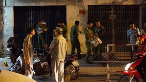 Hiện trường vụ 2 "hiệp sĩ" thuộc Đội hiệp sĩ quận Tân Bình bị đâm tử vong cách trụ sở công an phường 10, quận 3, chỉ khoảng 20 mét. Ảnh: Tri thức Trực tuyến